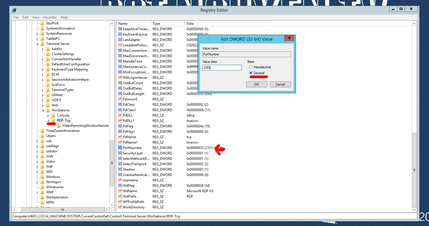 HKEY_LOCAL_MACHINE\System\CurrentControlSet\Control\Terminal Server\WinStations\RDP-Tcp