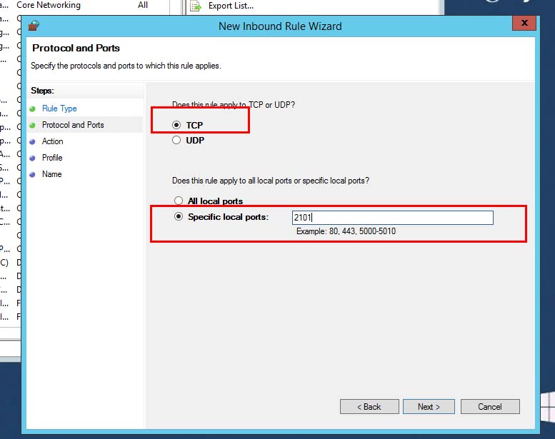 Tiếp theo ae gõ port rdp tùy chỉnh tại ô Specific local port (port này phải trùng với port đã mở ở trong regedit), sau đó nhấn next và chọn y như hình dưới là ok