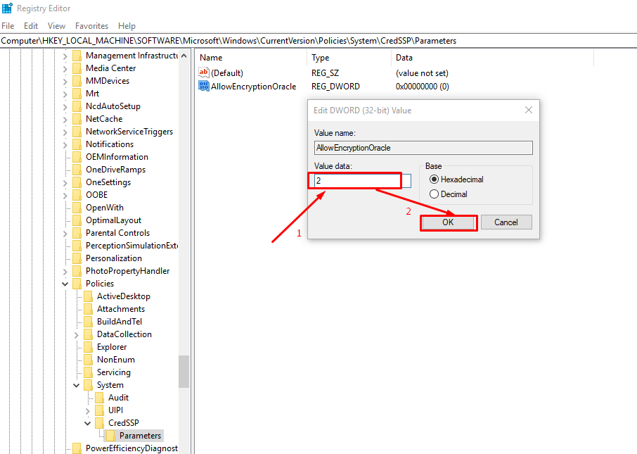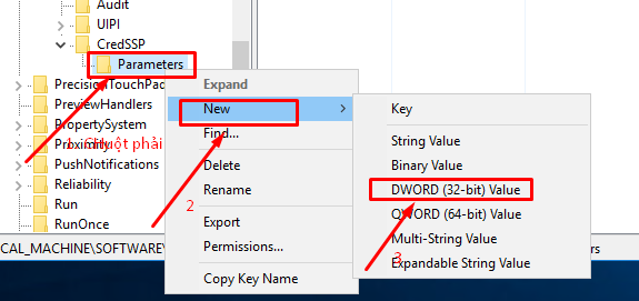 B2. Tạo CredSSP, key Parameters cho AllowEncryptionOracle