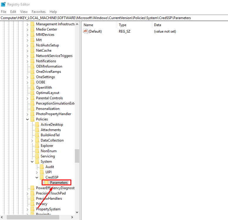 CredSSPtạo keyParametersbên trong keyCredSSP