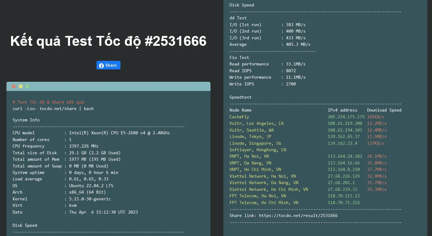 curl -Lso- tocdo.net | bashTest Tốc độ & Share kết quả
