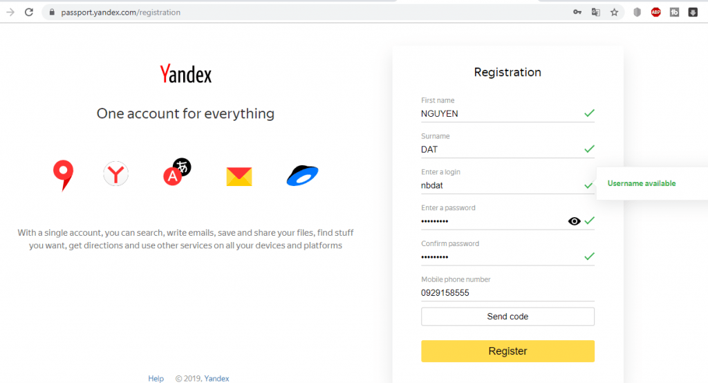 Sau khi đã có tài khoản yandex các bạn nhấn vào ĐÂY để thực hiện kết nối tên miền với tài khoản yandex
