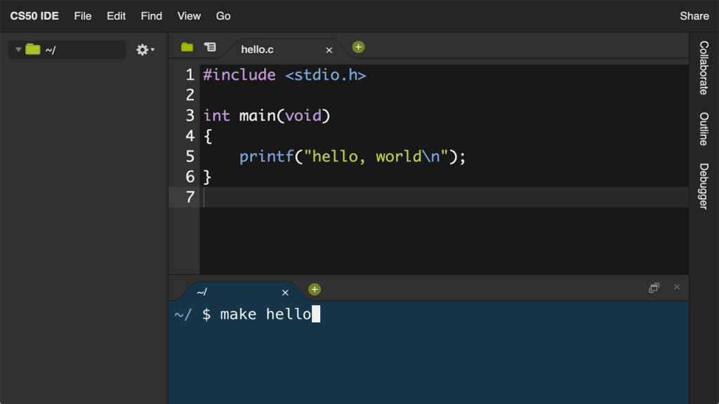 Và đây là màn hình khi đã login thành công, tại CS50 khi login thành công thì bạn sẽ có ngay 1 con VPS Ubuntu để sử dụng ngay và luôn, bây giờ thì bạn có thể cài mọi thứ tùy thích.